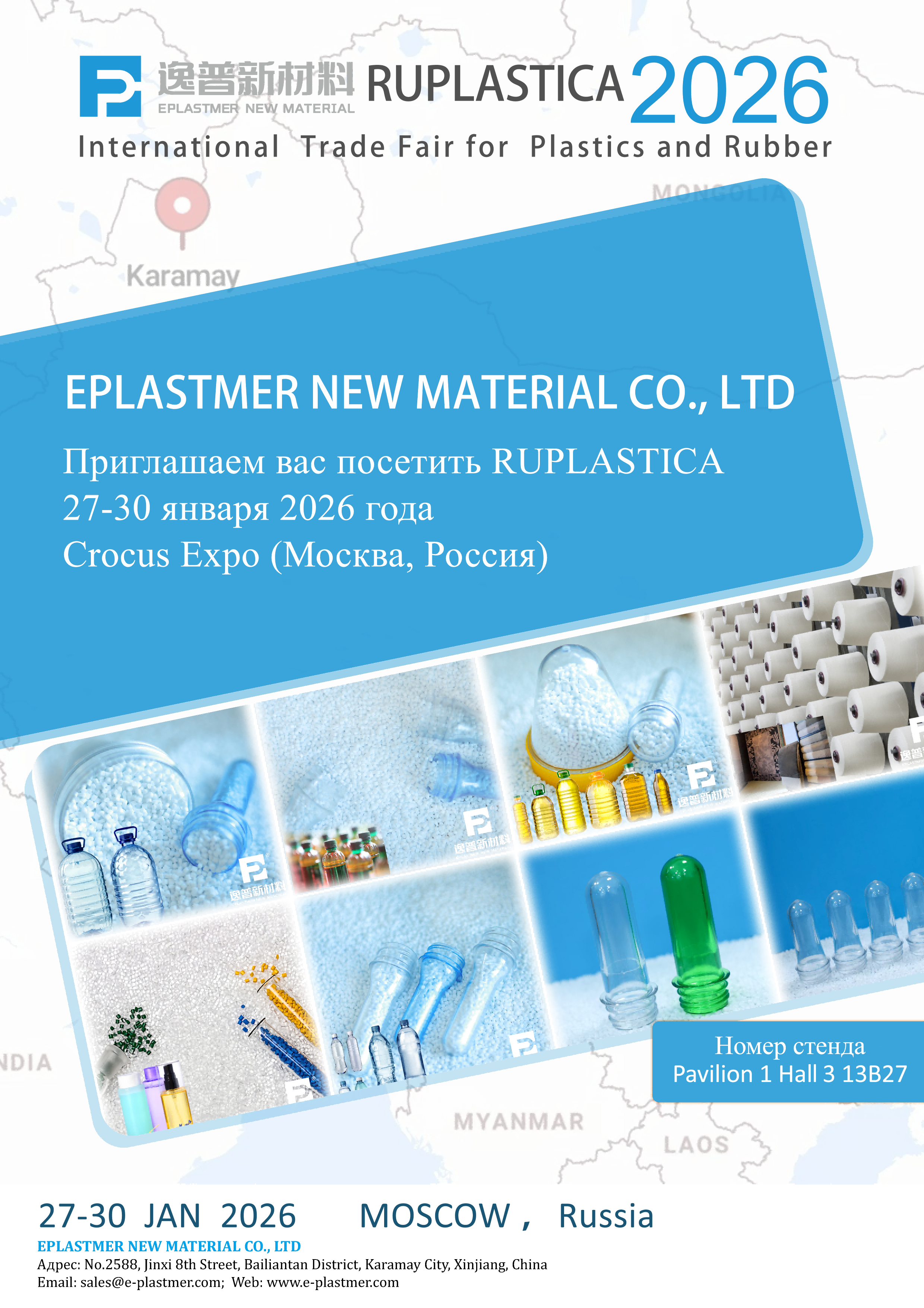 С быстрым развитием мировой резиновой и пластмассовой промышленности международная выставка RUPLASTICA снова становится в центре внимания отрасли. Мероприятие пройдет с 27 по 30 января 2026 года в Москве, Россия, и ожидается, что оно привлечет множество известных экспонентов для демонстрации новейших технологий и инновационных решений в сфере производства пластмасс и резины. Новый материал Eplastmer также будет представлен на выставке RUPLASTICA 2026.